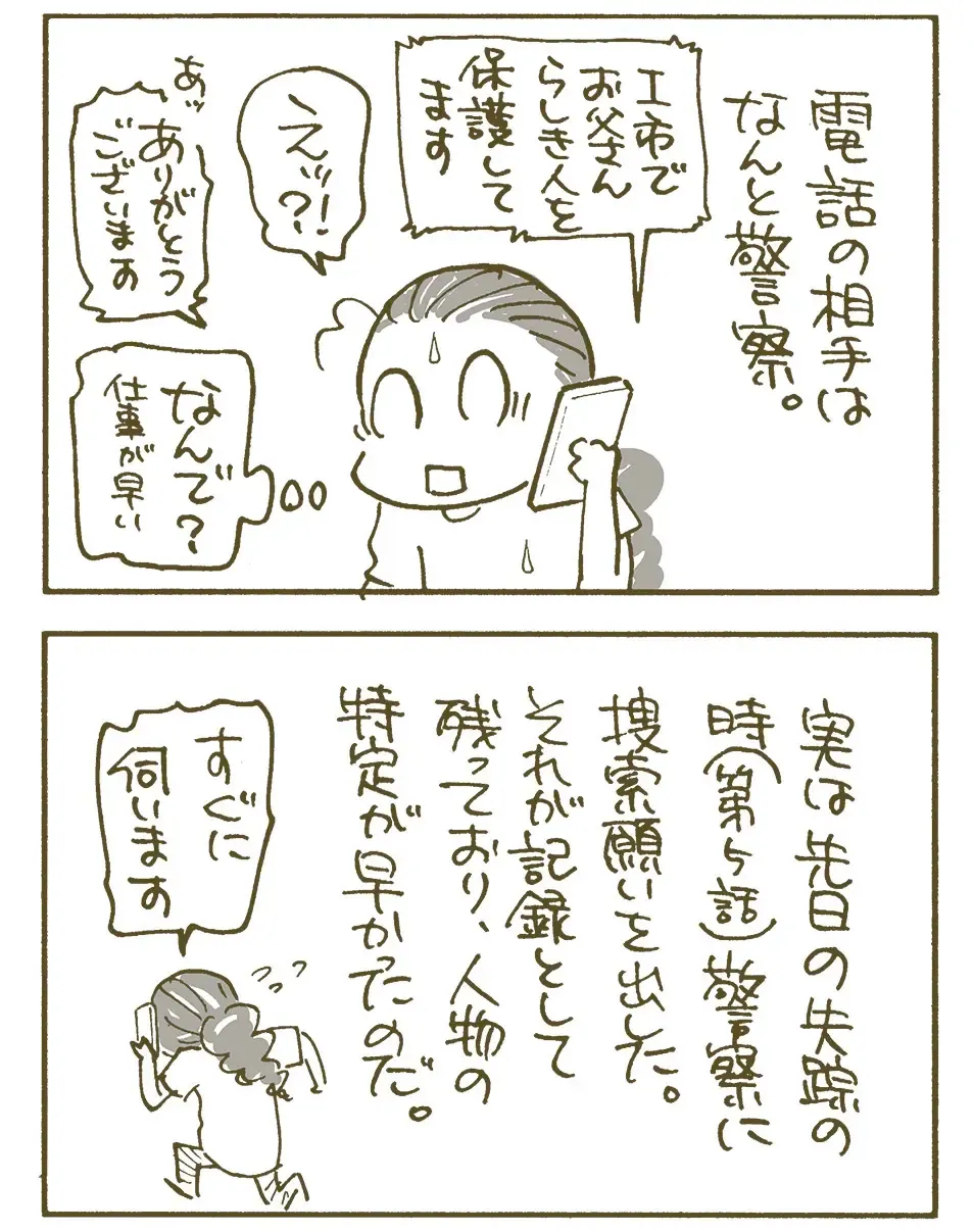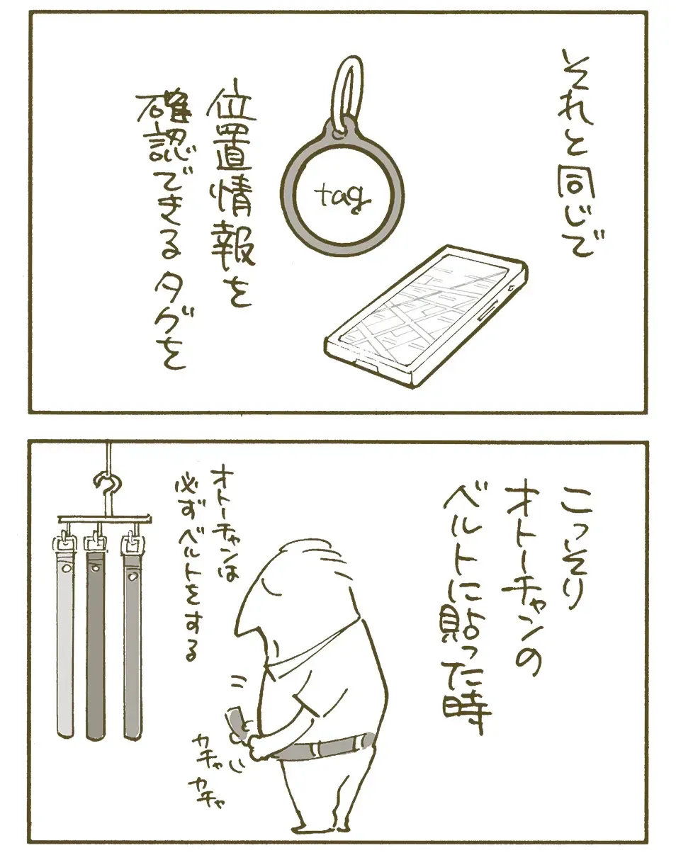 前回(第5話)、オトーチャンのひとり歩きの対策として位置情報タグをベルトに貼り、すっかり安心したご夫婦。そんなとき、とある出来事が起こりました。