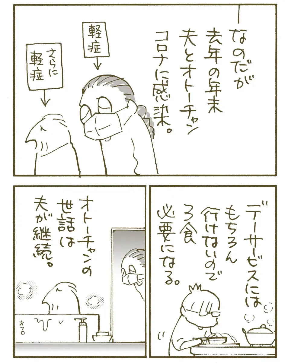 認知症になったオトーチャンの介護を、中心になって行っている。身の回りの世話や、病院やデイサービスの対応を担当している。