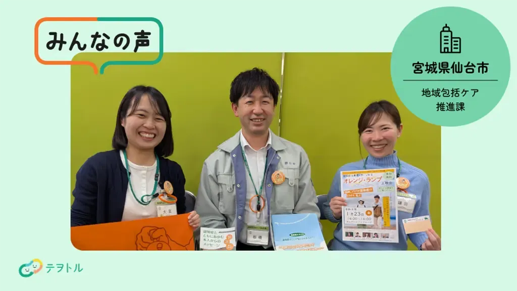 丹野さんからのこのメッセージがきっかけとなり、仙台市は「認知症の人とともに活動するまち」へと進化を続けている。そんな仙台市の認知症施策について、仙台市地域包括ケア推進課の板橋哲也さん、鎌田侑香里さん、大宮薫さんにお話を伺った。